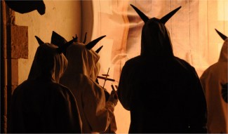 Seis colles de diablos y tambores protagonizaron el sábado la Noche de Fuego con un pasacalle por las calles de la vila.