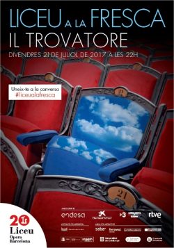 La ópera ‘Il Trovatore’, que forma parte de la tercera edición del proyecto «Liceu a la fresca», y está programada en el marco del Festival Conciertos de Media que también programa lírica para difundir. El director de escena, Joan Anton Rechi, utiliza la serie de grabados «Los desastres de la guerra» del artista Francisco Goya para diseñar la puesta en escena de la obra. El pintor aragonés se convierte así en un espectador de esta tragedia de amor, venganza, guerra y muerte. Esta versión está encapçalda por el tenor italiano Piero Pretti en el rol del trovador Manrico, la soprano norteamericana Tamara Wilson en el papel de Leonora y el barítono rumano George Petean como conde de Luna. Junto a otras voces, la obra cuenta con el Coro y la Orquesta sinfónica del Gran Teatre del Liceu y la participación especial del actor Carles Canut.